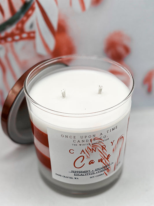 Candy Cane Soy Wax Candle - Peppermint, Eucalyptus, and Vanilla